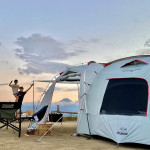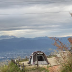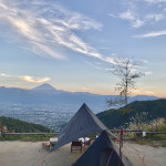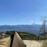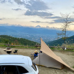 - 頂上サイトのスペースには、2台分の車、テント、タープが入る大きさです。